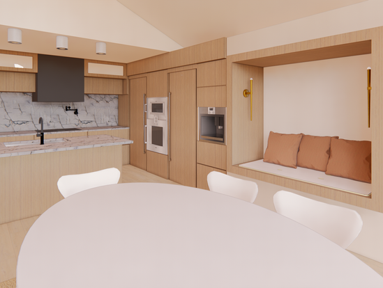Kitchen and Bath Design Project Requirements: This was my final kitchen design for mock clients. We were instructed to remodel an outdated kitchen to fit the clients wants and needs. I was instructed to allocate a certain number of linear feet to specific items such as everyday bowls, linens, pantry etc. I decided to go with an on-trend and clean-line look.